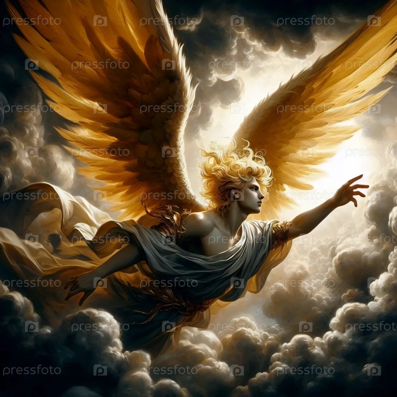 Ангел-барокко с драматическим факельным освещением, Ai generated image