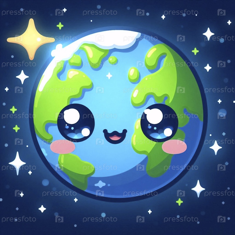 Милая планета Земля с лицом, Ai создала изображение