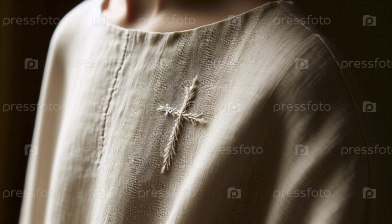 Крест, вышитый на задней стороне льняной туники, Ай создал изображение