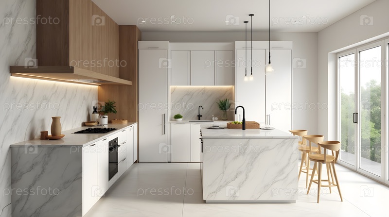 Кухня с мраморными столиками, image created using AI