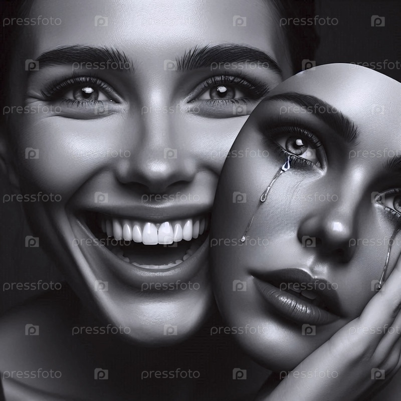 Женщина, держащая плачущую маску, Ai generated image