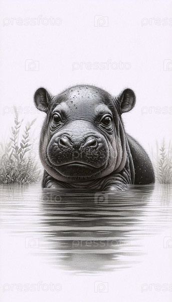 Малыш карликового бегемота в мелководной чернице рисует художественную печать, Ai generated image