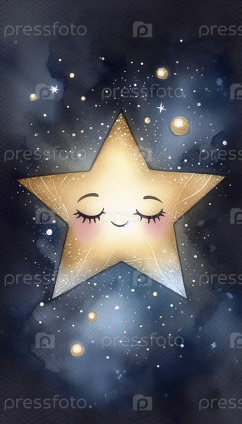 Мечтательная звезда акварельный арт-принт, Ai generated image A