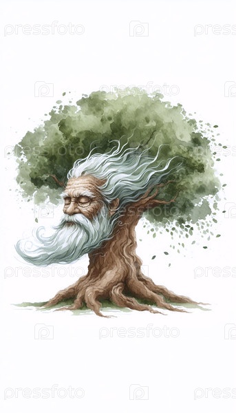 Gentle Tree акварельный художественный печат, Ai generated image A