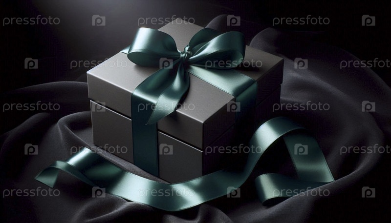 Жесткий макет подарочной коробки с атласной лентой, развязанной и положенной плоскостью, Ai generated image