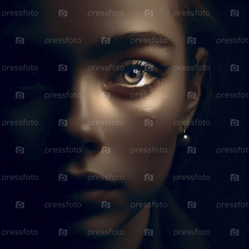 Портрет с полумакированным глазом в тени, глядя прямо на него, Ай создал изображение