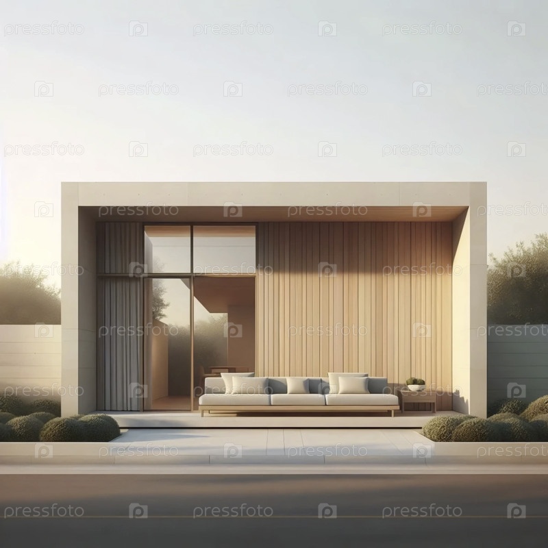 Нейтральный фотоотпечаток современного дома середины века, Ai generated image