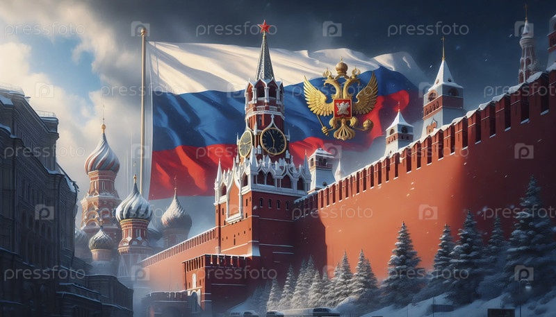 Российский флаг в Московском кремле Величество Кремля, Ai generated image