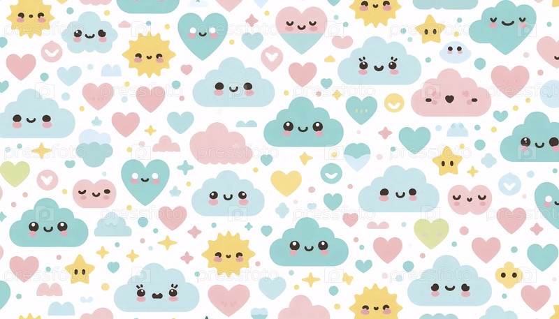 Kawaii background милый бесшовный геометрический шаблон, Ai generated image