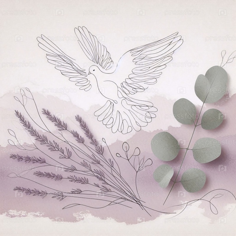 Стилизованный голубь летает над сухой лавандой, Ai generated image