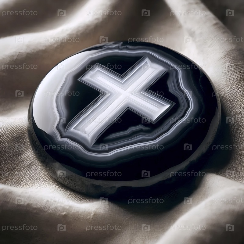 Черный кусок агаты с белым естественным крестообразованием, Ai generated image