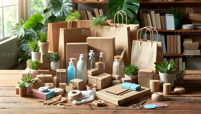 Экологически чистые упаковки, изображение AI-генерации