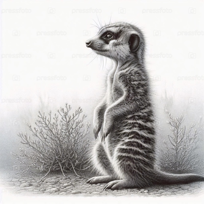 Щенок-сурикат стоящий охранник чернила рисование художественная печать, Ai generated image