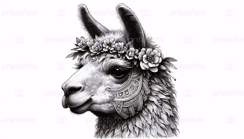 Ллама с цветочными чернилами рисование художественная печать, Ai generated image