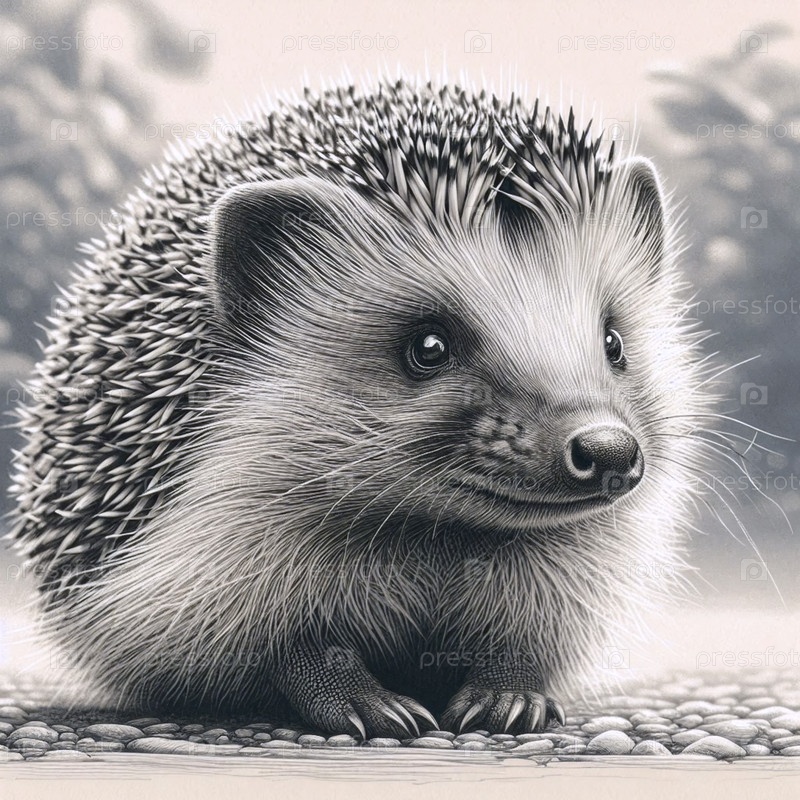 A curious hedgehog ink drawing art print, Ай создал изображение