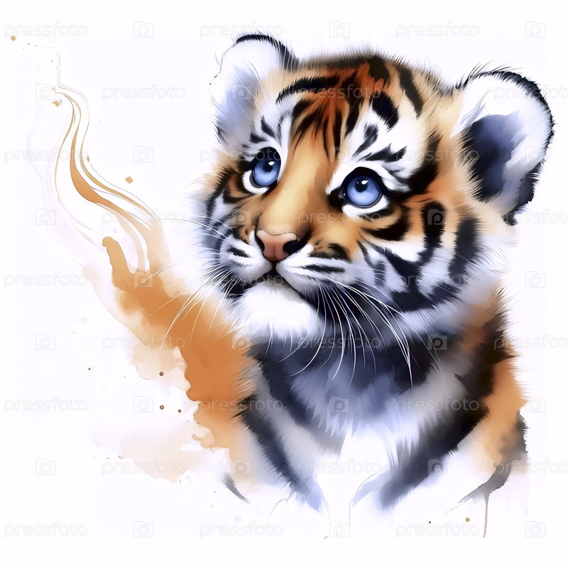 A Pleading Tiger Cub акварельный художественный печат, Ai generated image