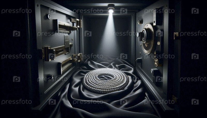 Простой, пустый макет цепочки-ожерелья, свернутый на куче черного шелка, Ай создал изображение