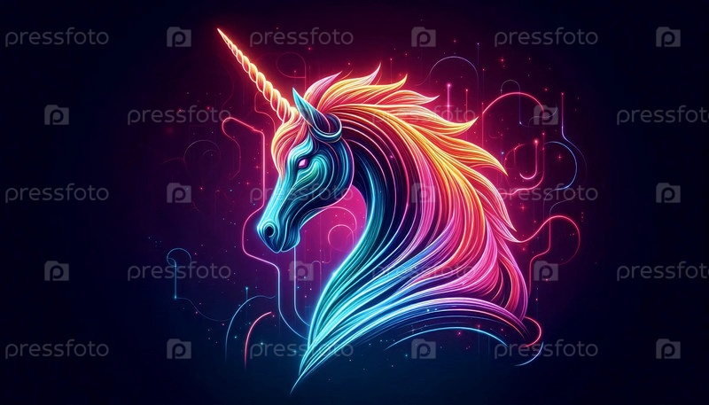 Единорог в неоновых цветах, Ai generated image