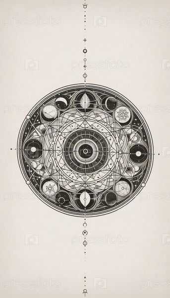 Небесная мистическая художественная печать тонкой линии, Ai generated image
