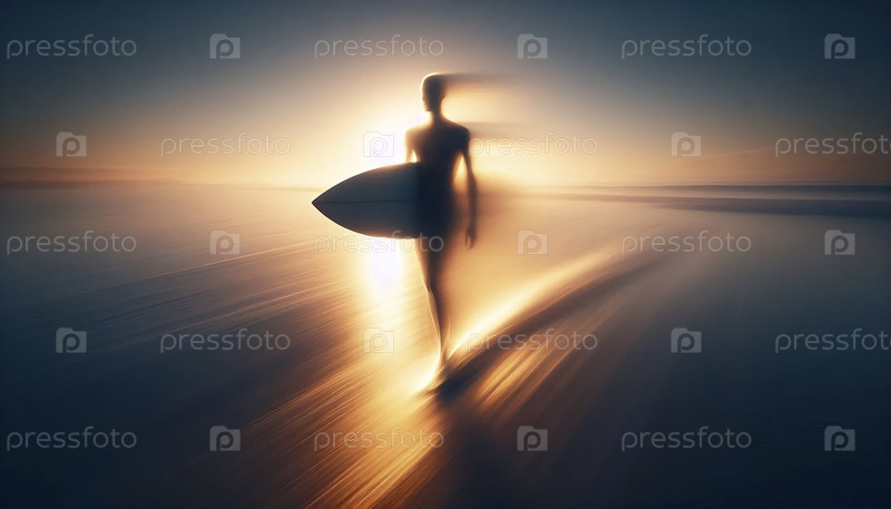 Фотография с длительной экспозицией серфера, идущего в океан на рассвете, Ai создала изображение