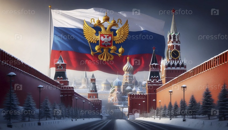 Российский флаг в Московском кремле Величество Кремля, Ai generated image