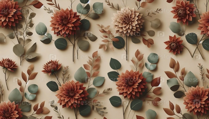 Терракотовая цветная осенняя цифровая бумага в зеленых и оранжевых цветах, Ai generated image