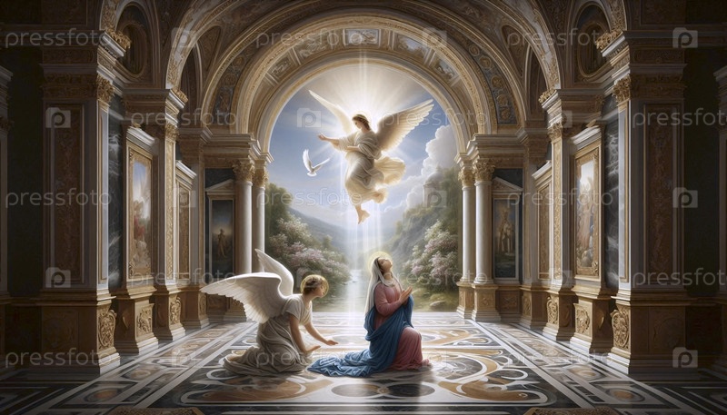 Благовещение в интерьере эпохи Возрождения, Ai generated image