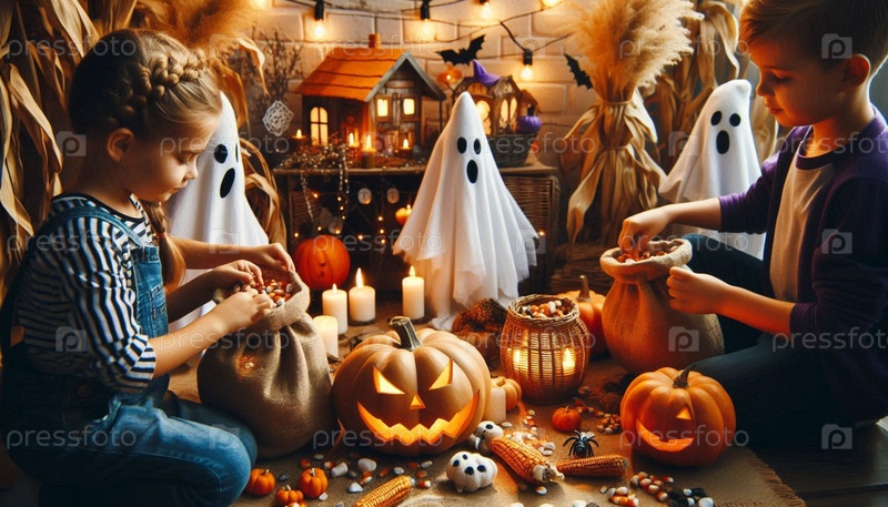 Halloween Eco Celebration, AI generated image Экологическое празднование Хэллоуина