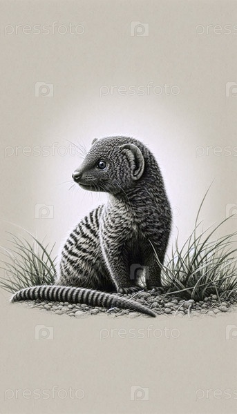 Щенок карликового мангуста стоит высоким чернилами и рисует художественную печать, Ai generated image