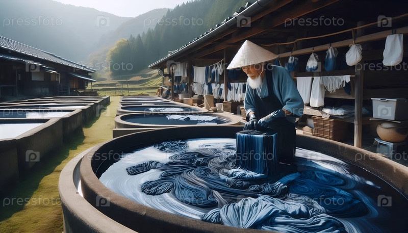 The Japanese Aizome Indigo, AI generated image Японская Айзоме Индиго, ИИ сгенерированное изображение