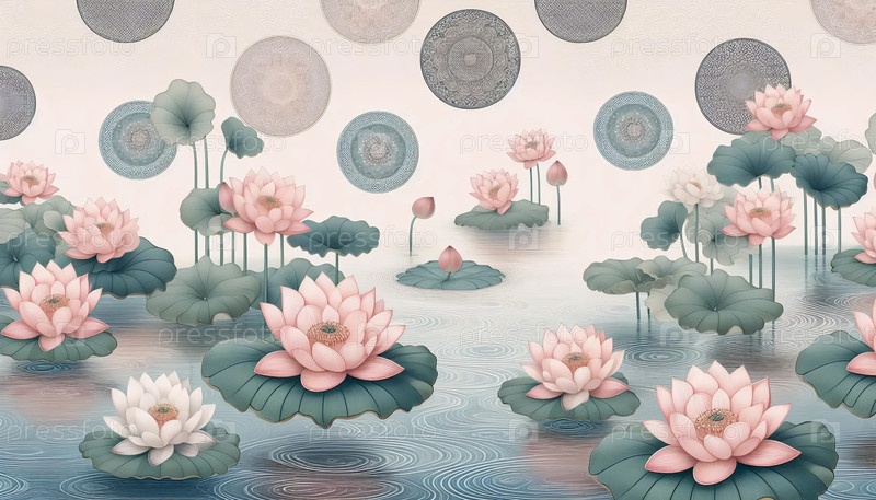 Японский дизайн обоев с повторяющимися узорами, Ai generated image