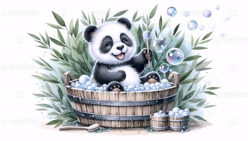 Панда в бамбуковом лесу Ванна акварельный арт-принт, Ai generated image