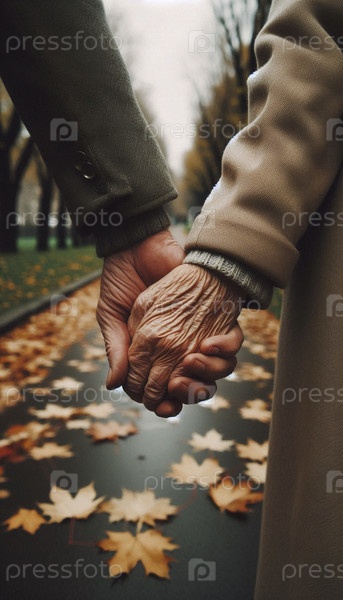 Тихий разговор о любви: пожилые пары, нежно держась за руки во время ходьбы, Ai generated image