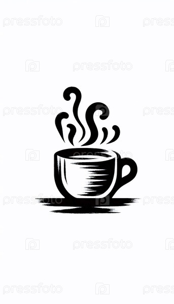 Простая чашка кофе чернила рисование художественная печать, Ai generated image