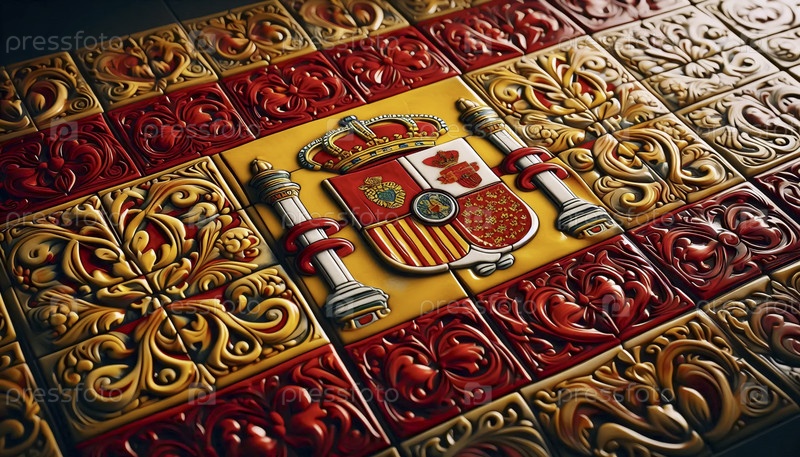 Испанский флаг, сделанный из традиционных керамических плиток, Ai generated image