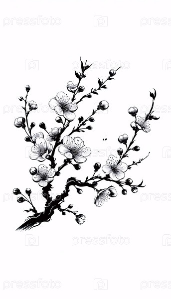 Вишневый цветок ветви линейного искусства, Ai generated image