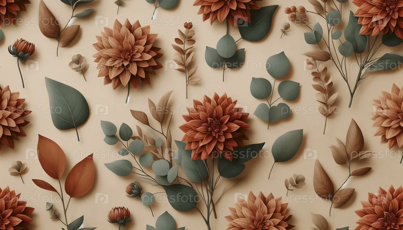 Терракотовая цветная осенняя цифровая бумага в зеленых и оранжевых цветах, Ai generated image