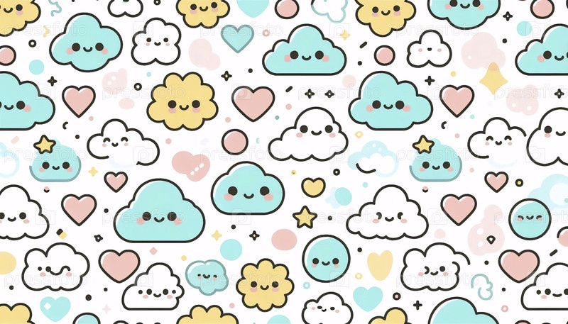 Kawaii background милый бесшовный геометрический шаблон, Ai generated image