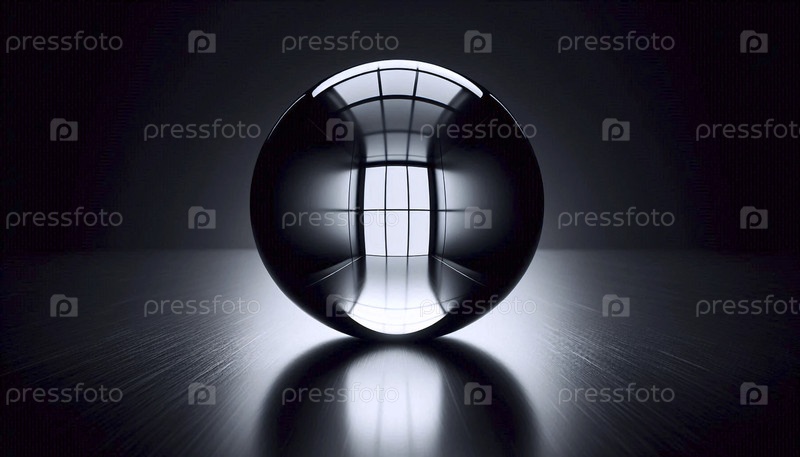 Совершенно сферическая капля воды на черной анодированной металлической поверхности, отражающая искаженную раму окна, Ai создала изображение