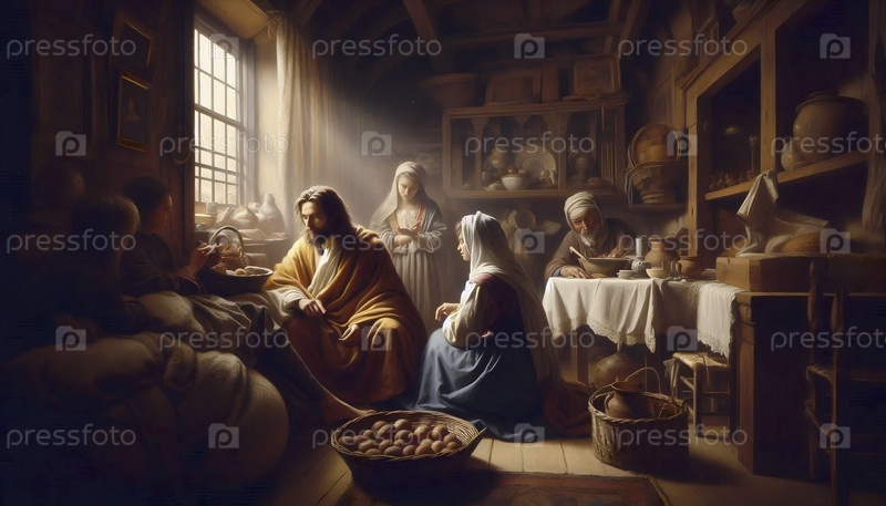 Христос в доме Марфы и Марии, голландский стиль Золотого века, Ai создал изображение