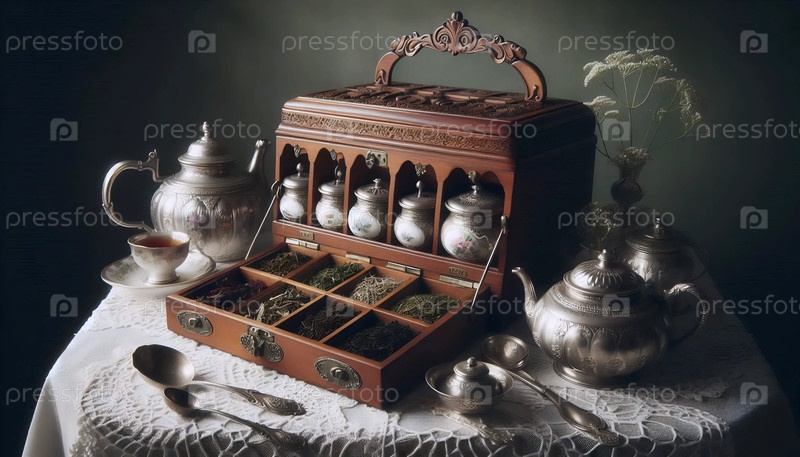 Коллекция старинных чайников, Ai generated image