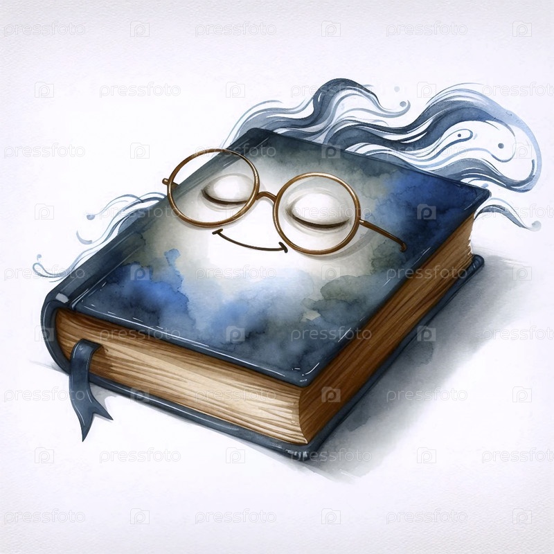 Акварельный арт-принт Sleepy Book, Ai создал изображение A
