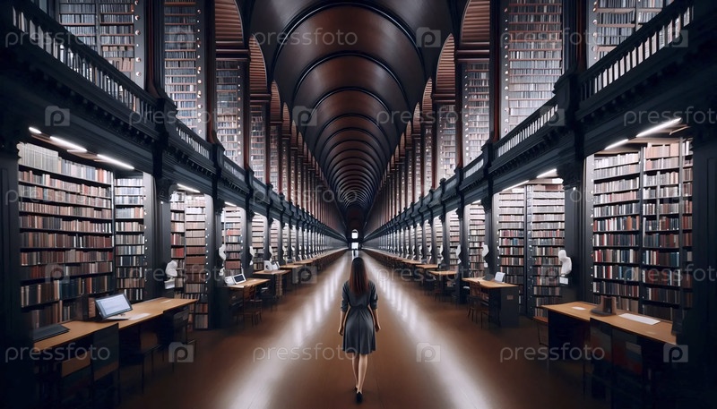 Широкий снимок библиотекаря, исчезающего в стеках, Ай создал изображение