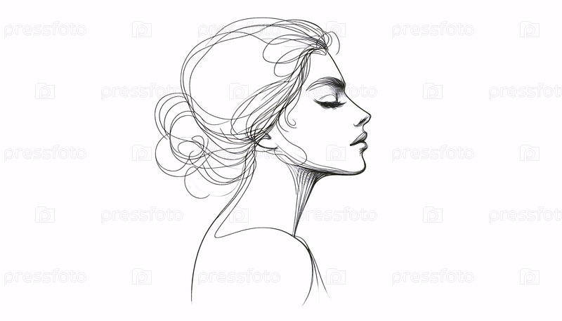 Стилизованный профиль Портрет чернила рисование искусство печати, Ai generated image