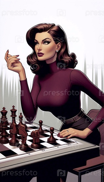 Пин-ап девушка как шахматист, делающая стратегический ход, Ai generated image