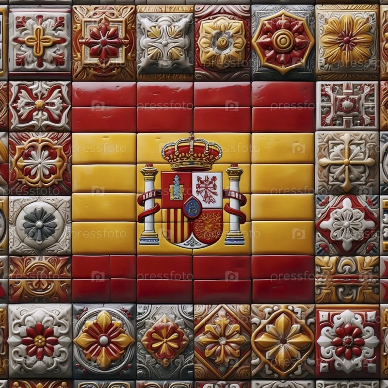 Испанский флаг, сделанный из традиционных керамических плиток, Ai generated image