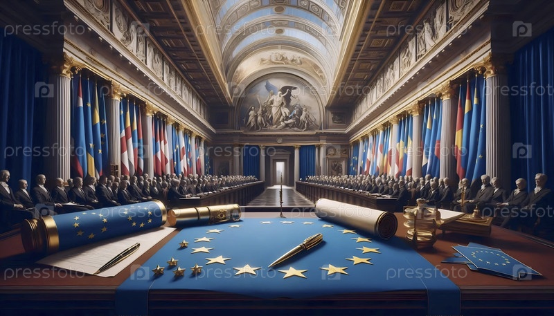 Флаг Европейского Союза во время подписания исторического договора, Ai generated image