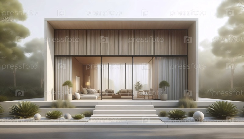 Нейтральный фотоотпечаток современного дома середины века, Ai generated image
