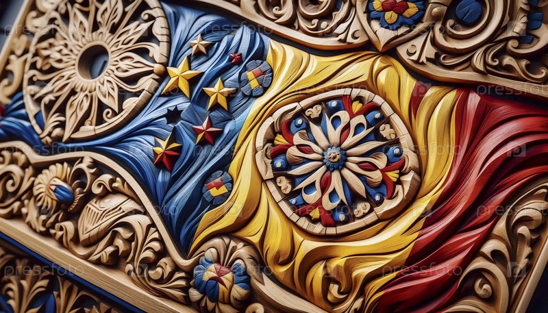 Румынский флаг в народной деревянной резьбе, Ai generated image A