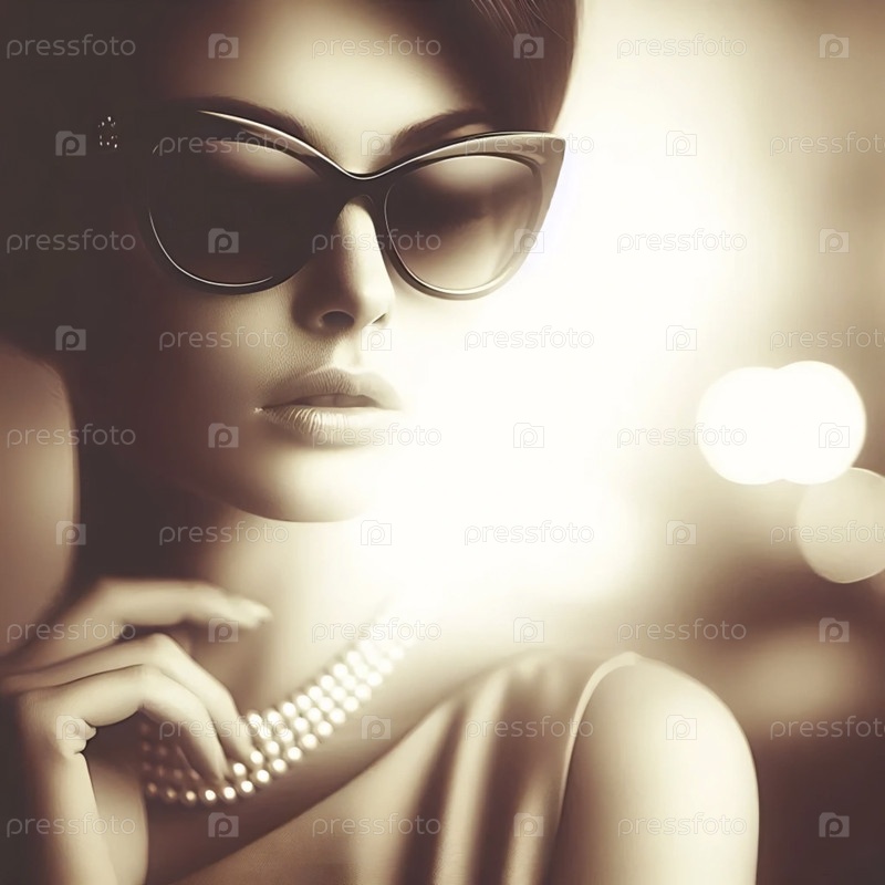 Сепия тон ретро гламурные солнцезащитные очки печать, Ai generated image
